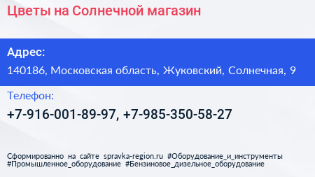 Цветы на Солнечной, магазин по адресу 140186, Московская область, Жуковский, Солнечная, 9 в дальнейшем Организация, размещена в следующих категориях: