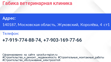 Габика, ветеринарная клиника по адресу 140187, Московская область, Жуковский, Королёва, 4 ст1 в дальнейшем Организация, размещена в следующих категориях: