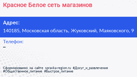 Красное & Белое, сеть магазинов по адресу 140185, Московская область, Жуковский, Маяковского, 9 в дальнейшем Организация, размещена в следующих категориях: