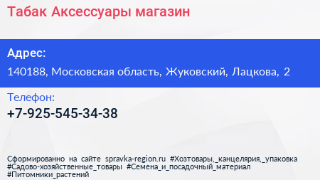Табак & Аксессуары, магазин по адресу 140188, Московская область, Жуковский, Лацкова, 2 в дальнейшем Организация, размещена в следующих категориях:
