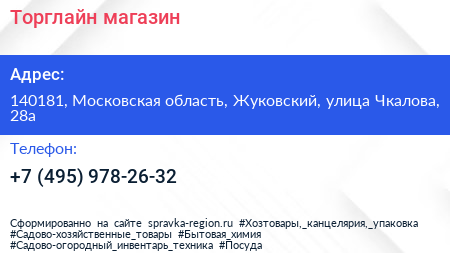 Торглайн, магазин по адресу 140181, Московская область, Жуковский, улица Чкалова, 28а в дальнейшем Организация, размещена в следующих категориях: