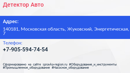 Детектор Авто по адресу 140181, Московская область, Жуковский, Энергетическая, 7 в дальнейшем Организация, размещена в следующих категориях: