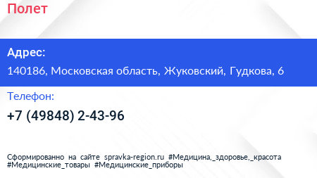 Полет по адресу 140186, Московская область, Жуковский, Гудкова, 6 в дальнейшем Организация, размещена в следующих категориях: