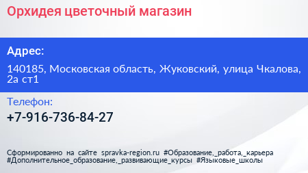 Орхидея, цветочный магазин по адресу 140185, Московская область, Жуковский, улица Чкалова, 2а ст1 в дальнейшем Организация, размещена в следующих категориях:
