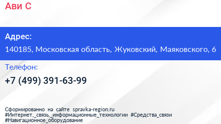 Ави-С по адресу 140185, Московская область, Жуковский, Маяковского, 6 в дальнейшем Организация, размещена в следующих категориях: