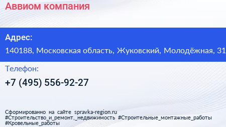 Аввиом, компания по адресу 140188, Московская область, Жуковский, Молодёжная, 31 в дальнейшем Организация, размещена в следующих категориях: