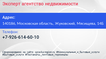 Эксперт, агентство недвижимости по адресу 140186, Московская область, Жуковский, Мясищева, 14Б в дальнейшем Организация, размещена в следующих категориях: