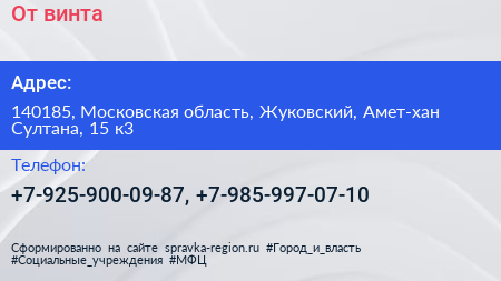 От винта по адресу 140185, Московская область, Жуковский, Амет-хан Султана, 15 к3 в дальнейшем Организация, размещена в следующих категориях: