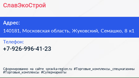 СлавЭкоСтрой по адресу 140181, Московская область, Жуковский, Семашко, 8 к1 в дальнейшем Организация, размещена в следующих категориях: