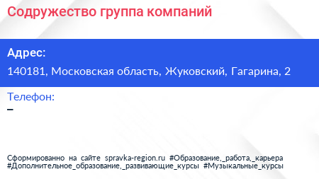 Содружество, группа компаний по адресу 140181, Московская область, Жуковский, Гагарина, 2 в дальнейшем Организация, размещена в следующих категориях: