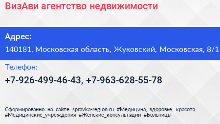 ВизАви, агентство недвижимости по адресу 140181, Московская область, Жуковский, Московская, 8/1 в дальнейшем Организация, размещена в следующих категориях: