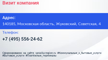 Визит, компания по адресу 140185, Московская область, Жуковский, Советская, 4 в дальнейшем Организация, размещена в следующих категориях: