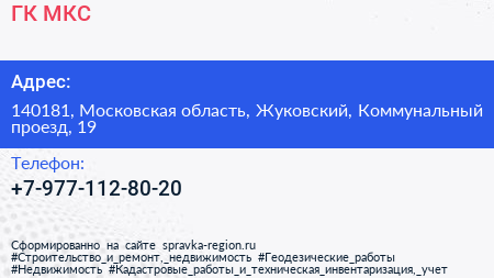 ГК МКС по адресу 140181, Московская область, Жуковский, Коммунальный проезд, 19 в дальнейшем Организация, размещена в следующих категориях:
