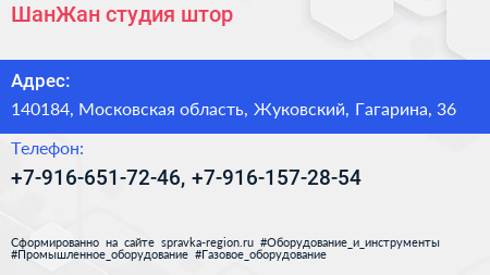 ШанЖан, студия штор по адресу 140184, Московская область, Жуковский, Гагарина, 36 в дальнейшем Организация, размещена в следующих категориях: