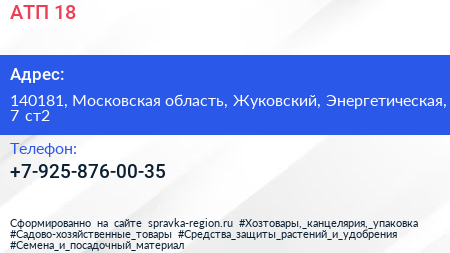 АТП-18 по адресу 140181, Московская область, Жуковский, Энергетическая, 7 ст2 в дальнейшем Организация, размещена в следующих категориях: