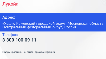 Лукойл по адресу «Урал», Раменский городской округ, Московская область, Центральный федеральный округ, Россия в дальнейшем Организация, размещена в следующих категориях: