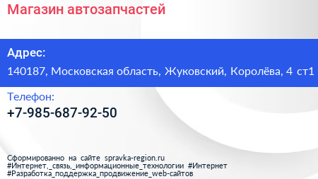 Магазин автозапчастей по адресу 140187, Московская область, Жуковский, Королёва, 4 ст1 в дальнейшем Организация, размещена в следующих категориях: