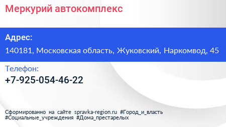 Меркурий, автокомплекс по адресу 140181, Московская область, Жуковский, Наркомвод, 45 в дальнейшем Организация, размещена в следующих категориях:
