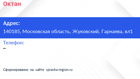 Октан по адресу 140185, Московская область, Жуковский, Гарнаева, вл1 в дальнейшем Организация, размещена в следующих категориях: