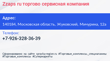 Zzaps.ru, торгово-сервисная компания по адресу 140184, Московская область, Жуковский, Мичурина, 12а в дальнейшем Организация, размещена в следующих категориях: