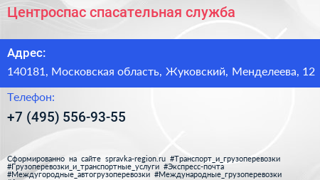 Центроспас, спасательная служба по адресу 140181, Московская область, Жуковский, Менделеева, 12 в дальнейшем Организация, размещена в следующих категориях: