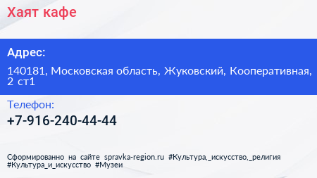 Хаят, кафе по адресу 140181, Московская область, Жуковский, Кооперативная, 2 ст1 в дальнейшем Организация, размещена в следующих категориях: