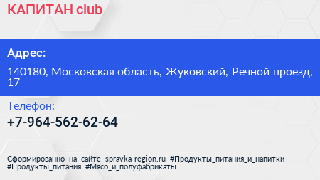 КАПИТАН club по адресу 140180, Московская область, Жуковский, Речной проезд, 17 в дальнейшем Организация, размещена в следующих категориях: