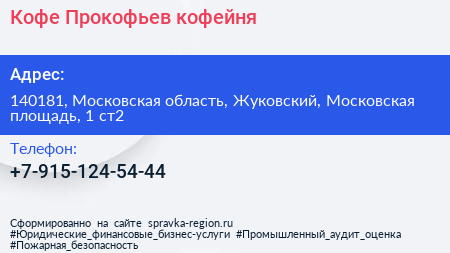 Кофе Прокофьев, кофейня по адресу 140181, Московская область, Жуковский, Московская площадь, 1 ст2 в дальнейшем Организация, размещена в следующих категориях: