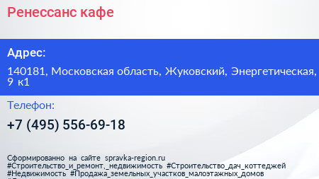 Ренессанс, кафе по адресу 140181, Московская область, Жуковский, Энергетическая, 9 к1 в дальнейшем Организация, размещена в следующих категориях: