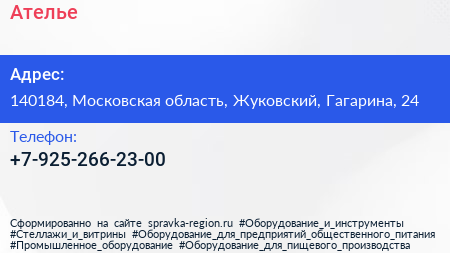Ателье по адресу 140184, Московская область, Жуковский, Гагарина, 24 в дальнейшем Организация, размещена в следующих категориях: