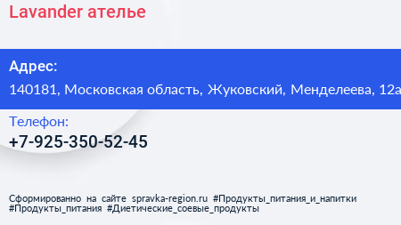 Lavander, ателье по адресу 140181, Московская область, Жуковский, Менделеева, 12а в дальнейшем Организация, размещена в следующих категориях: