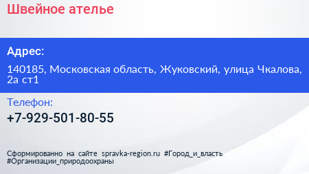 Швейное ателье по адресу 140185, Московская область, Жуковский, улица Чкалова, 2а ст1 в дальнейшем Организация, размещена в следующих категориях: