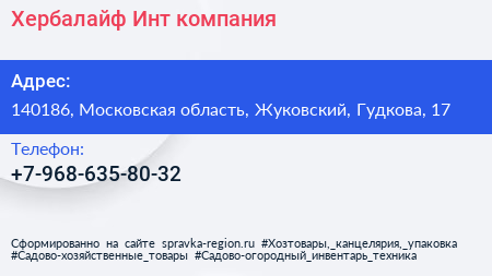 Хербалайф Инт, компания по адресу 140186, Московская область, Жуковский, Гудкова, 17 в дальнейшем Организация, размещена в следующих категориях: