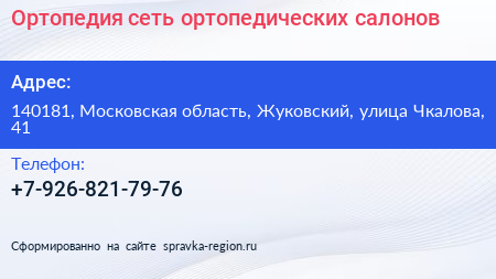 Ортопедия, сеть ортопедических салонов по адресу 140181, Московская область, Жуковский, улица Чкалова, 41 в дальнейшем Организация, размещена в следующих категориях: