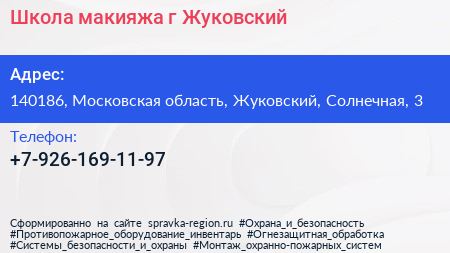 Школа макияжа, г. Жуковский по адресу 140186, Московская область, Жуковский, Солнечная, 3 в дальнейшем Организация, размещена в следующих категориях: