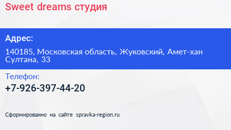 Sweet dreams, студия по адресу 140185, Московская область, Жуковский, Амет-хан Султана, 33 в дальнейшем Организация, размещена в следующих категориях: