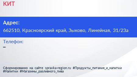 КИТ по адресу 662510, Красноярский край, Зыково, Линейная, 31/23а в дальнейшем Организация, размещена в следующих категориях: