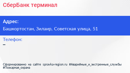 СберБанк, терминал по адресу Башкортостан, Зилаир, Советская улица, 51 в дальнейшем Организация, размещена в следующих категориях: