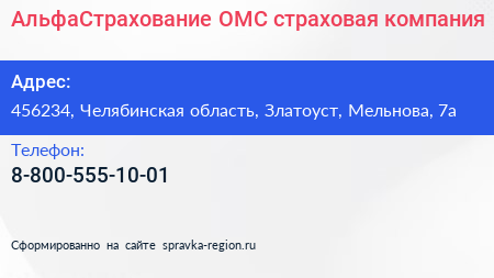 АльфаСтрахование-ОМС, страховая компания по адресу 456234, Челябинская область, Златоуст, Мельнова, 7а в дальнейшем Организация, размещена в следующих категориях: