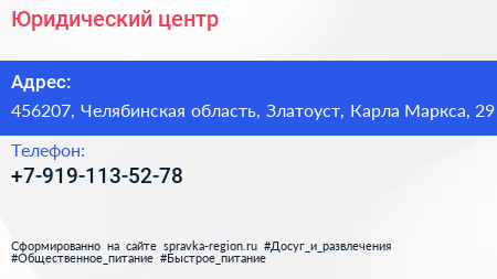 Юридический центр по адресу 456207, Челябинская область, Златоуст, Карла Маркса, 29 в дальнейшем Организация, размещена в следующих категориях: