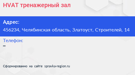 HVAT, тренажерный зал по адресу 456234, Челябинская область, Златоуст, Строителей, 14 в дальнейшем Организация, размещена в следующих категориях: