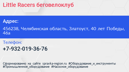 Little Rасers, беговелоклуб по адресу 456238, Челябинская область, Златоуст, 40 лет Победы, 46а в дальнейшем Организация, размещена в следующих категориях: