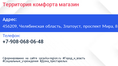 Территория комфорта, магазин по адресу 456209, Челябинская область, Златоуст, проспект Мира, 8 в дальнейшем Организация, размещена в следующих категориях: