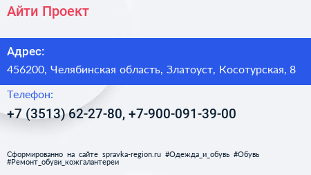 Айти Проект по адресу 456200, Челябинская область, Златоуст, Косотурская, 8 в дальнейшем Организация, размещена в следующих категориях: