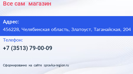 Все сам+, магазин по адресу 456228, Челябинская область, Златоуст, Таганайская, 204 в дальнейшем Организация, размещена в следующих категориях: