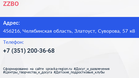 ZZBO по адресу 456216, Челябинская область, Златоуст, Суворова, 57 к8 в дальнейшем Организация, размещена в следующих категориях: