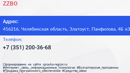 ZZBO по адресу 456216, Челябинская область, Златоуст, Панфилова, 4Б к3 в дальнейшем Организация, размещена в следующих категориях: