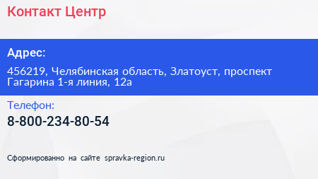 Контакт-Центр по адресу 456219, Челябинская область, Златоуст, проспект Гагарина 1-я линия, 12а в дальнейшем Организация, размещена в следующих категориях:
