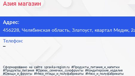 Азия, магазин по адресу 456228, Челябинская область, Златоуст, квартал Медик, 2а в дальнейшем Организация, размещена в следующих категориях: