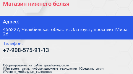 Магазин нижнего белья по адресу 456227, Челябинская область, Златоуст, проспект Мира, 26 в дальнейшем Организация, размещена в следующих категориях: